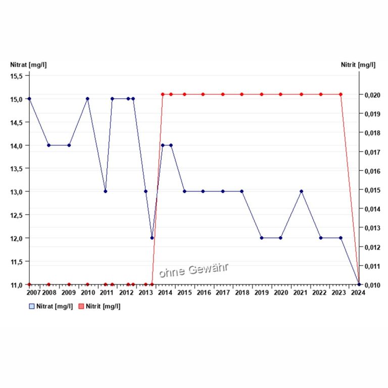 Bei den Brunnen Poschen I (38 mg/l) und Poschen II (39 mg/l) liegen die gemessenen Nitratwerte über dem vorsorglichen Schwellenwert von 37,5 mg/l. Dieser Wert liegt zwar noch unter dem gesetzlichen Grenzwert, zeigt jedoch, dass die Belastung bereits erhöht ist und seit einigen Jahren kontinuierlich steigt. Aus Sicht der UI Umwelt Initiative Schnaitsee ist das ein klares Signal, frühzeitig gegenzusteuern – durch konsequenten Quell- und Wasserschutz, um die Trinkwasserqualität langfristig zu sichern und weitere Belastungen zu vermeiden.
